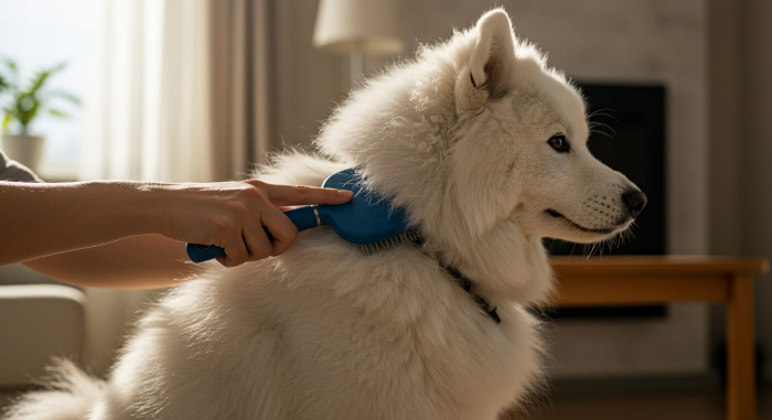 현관 앞에서 가볍게 브러싱을 해주는 것만으로도 냄새 제거 + 알레르기 예방에 효과적입니다.