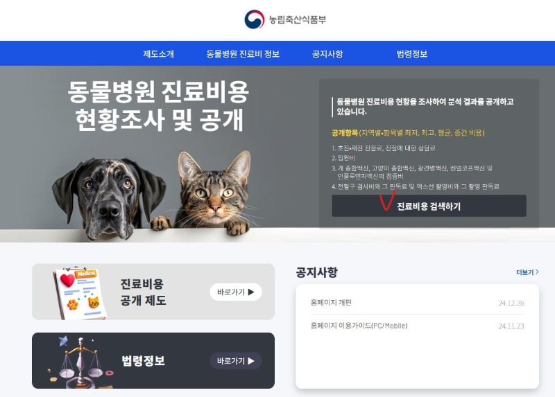 그런데 다행히도, 이제는 정부에서 운영하는 공식 사이트를 통해 지역별 평균 동물병원 진료비를 간편하게 확인할 수 있습니다.
